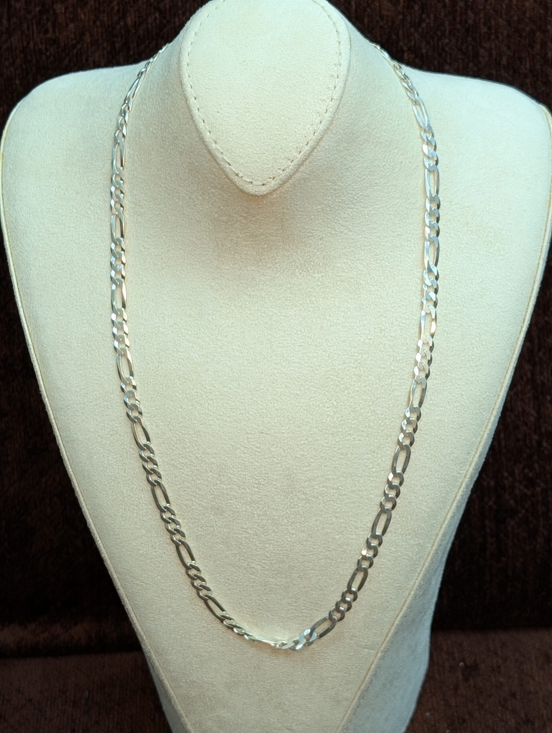 Figaro design solid 925 sterling silver necklace chain , 24″, 20.34g