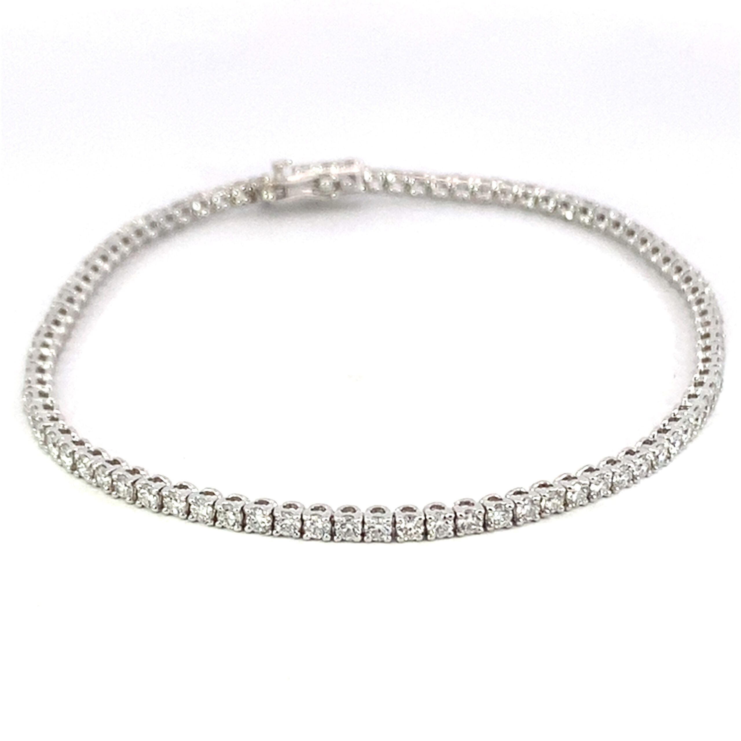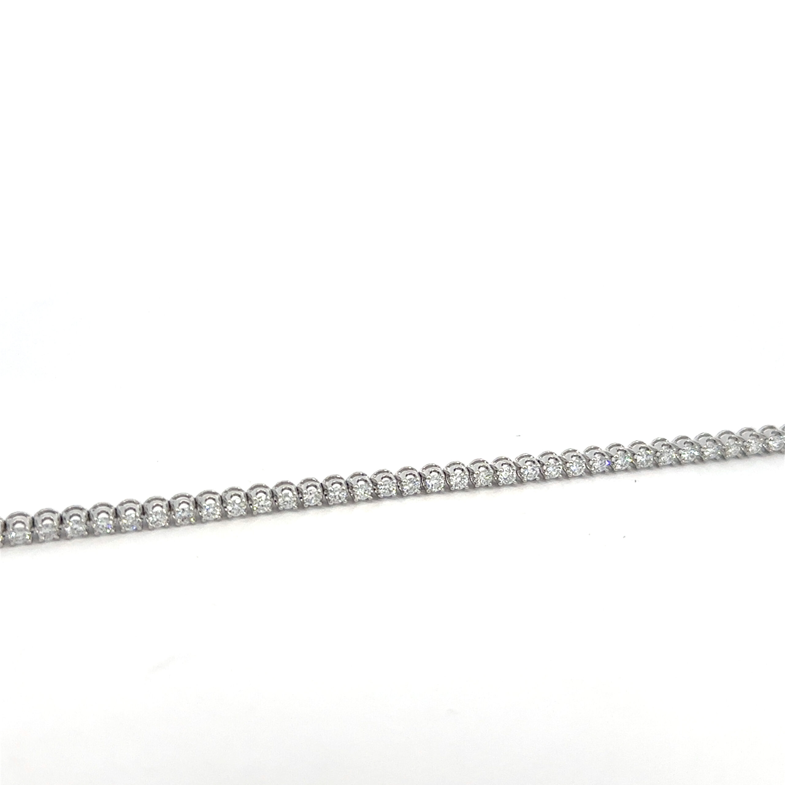 A diamond tennis bracelet is a type of elegant, continuous bracelet that features a single line of uniform diamonds, set closely together. This design creates a seamless, glittering effect that wraps around the wrist. The diamonds are typically set in a metal band, which can be made of white gold, yellow gold, rose gold, or platinum, depending on personal preference.These bracelets are known for their timeless and sophisticated style, making them a popular choice for special occasions and as a luxurious accessory for formal or semi-formal outfits. The diamonds in a tennis bracelet are often of high quality, with clarity, cut, colour, and carat weight (the 4 Cs) carefully considered to ensure brilliance and sparkle. Check various options in 9K to 18K gold or platinum , set with Round shape lab grown or natural mined diamonds up to 14Ct tdw.